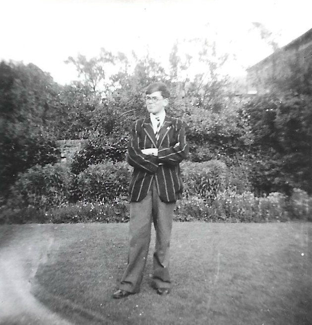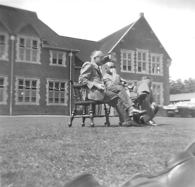 John Lineton (in cricket whites), Mr Best (with beard, Biology teacher);