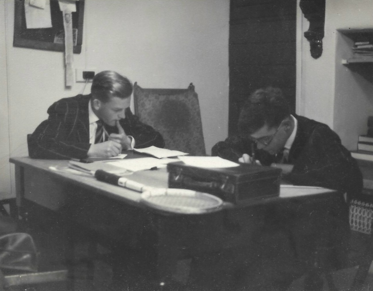19 - Peter Sedgwick and Peter Millward hard at work in the Prefects' Room.